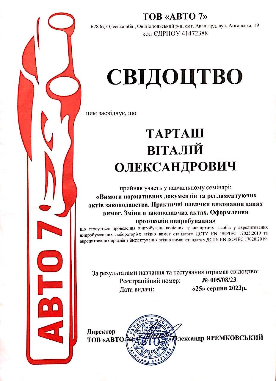 Номер виконавця згідно з реєстром субʼєктів ОТК
